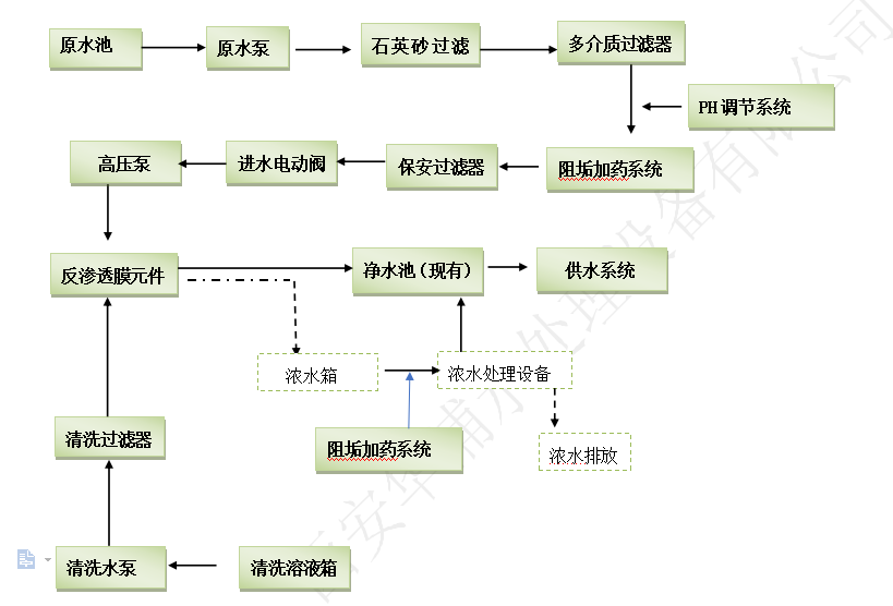 1.項目采用一級+二級反滲透、EDI、超濾等膜處理工藝處理。
