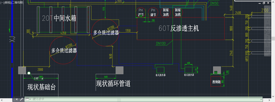 項目工藝:采用“換熱器+多介質過濾器+PH調節系統+阻垢加藥裝置+精密過濾器+反滲透膜法為一體的全自動成套設備”水處理工藝